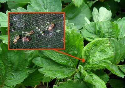 | Земляничный клещ | Очень мелкое насекомое — его размер всего 0,2 мм. Самка откладывает яйца в бутоны. Появившиеся личинки питаются молодыми листиками, которые покрываются бугорками, съёживаются, замедляют развитие. Куст смотрится карликовым по сравнению со здоровыми растениями. Ягоды мельчают. После зимовки такие растения обычно не выживают. |