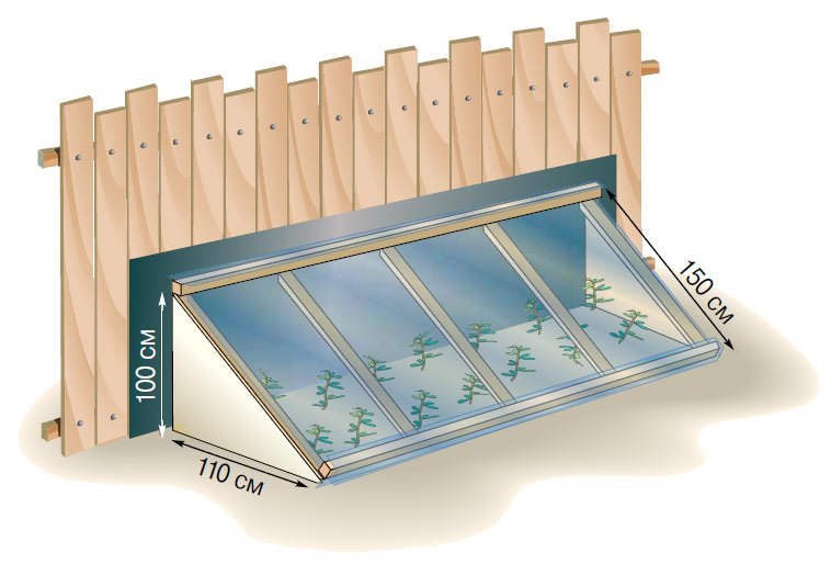 - Установите деревянный каркас и натяните на него плёнку. Если используете стекло, закрепите его в рамы каркаса и зафиксируйте накладками.